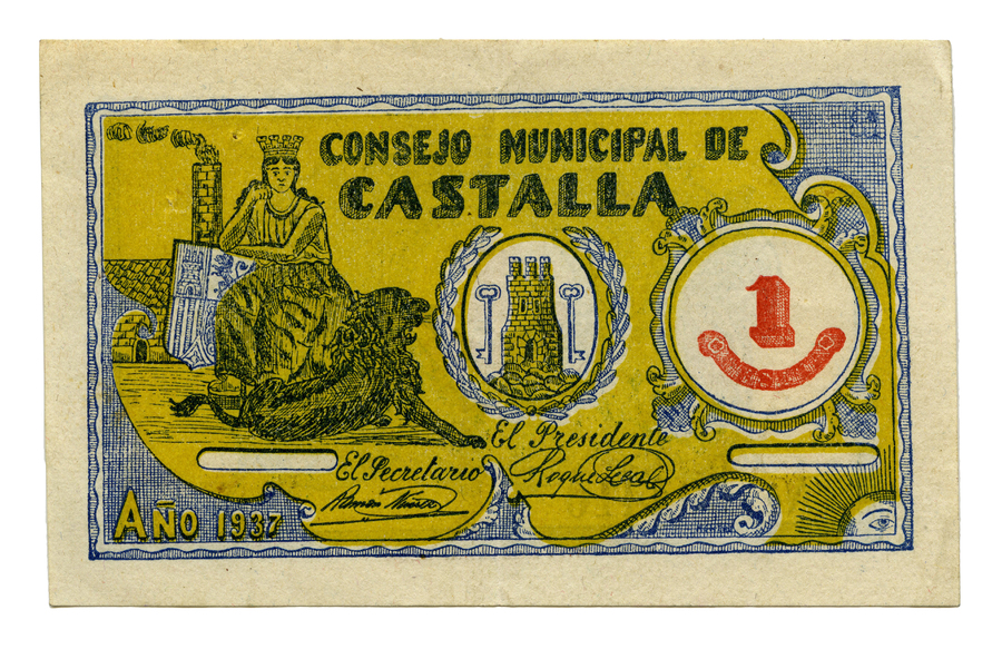 Consell Municipal de Castalla. 1 pesseta. 1937.