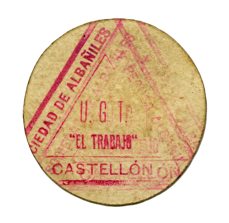 Societat d'Obreres i Peons U.G.T (Castelló). 1 pesseta. 1937.