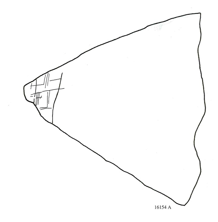 Cara A: yuxtaposición de reticulado irregular y superficie pintada (grabado somero y muy somero y pintura roja perdida)