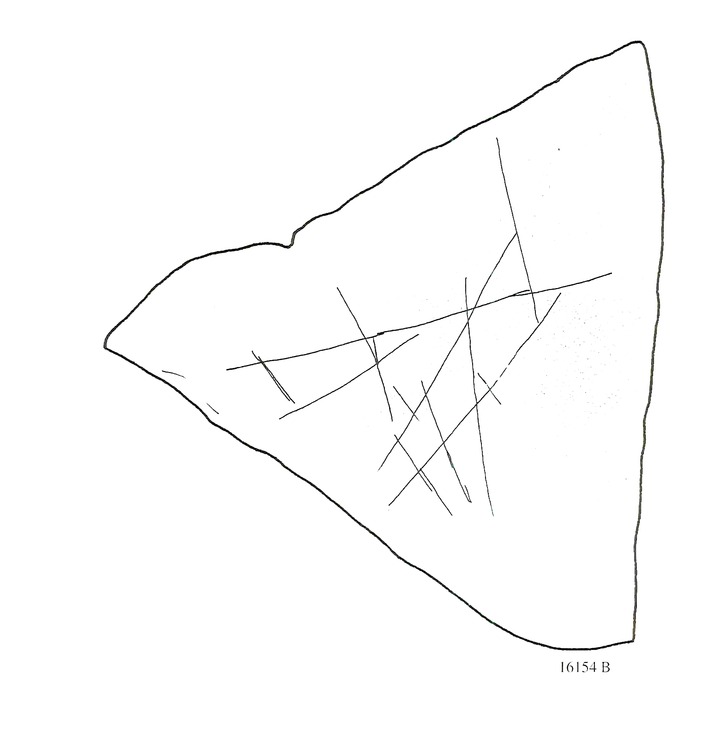 Cara B: Líneas sueltas rectas entrecruzadas y superficie pintada (grabado somero y pintura roja perdida).