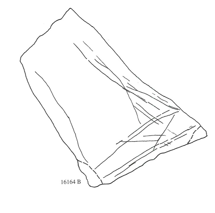 Plaqueta grabada con motivos simbólicos en las dos caras. Cova del Parpalló (Gandia, Valencia). Solutrense inferior.