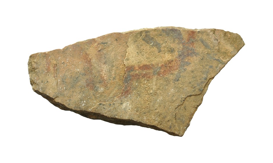 Plaqueta pintada y grabada con motivos simbólicos. Cova del Parpalló (Gandia, Valencia). Solutrense inferior.