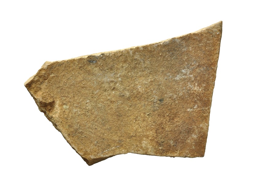 Plaqueta grabada y pintada con una figura zoomorfa. Cova del Parpalló (Gandia, Valencia) Solutrense inferior.