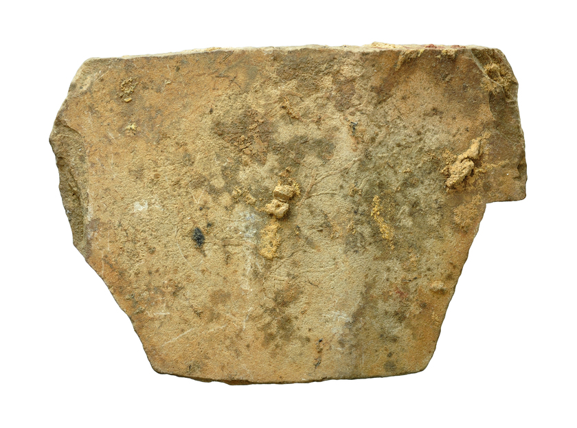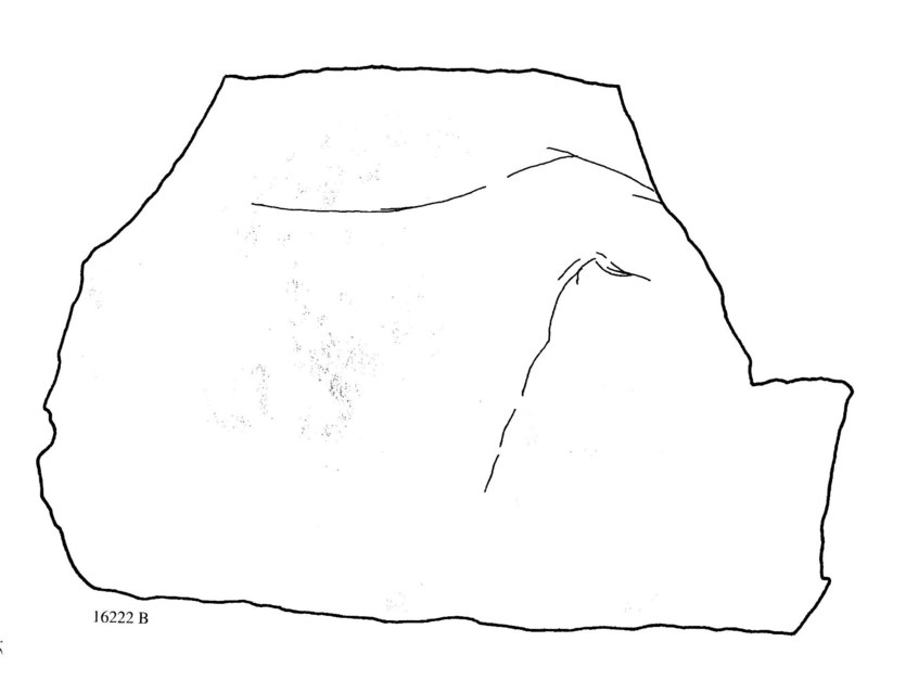 Cara B: superposición de prótomo de indeterminado (trazo simple) -en perfil absoluto- y superficie pintada (pintura roja perdida).