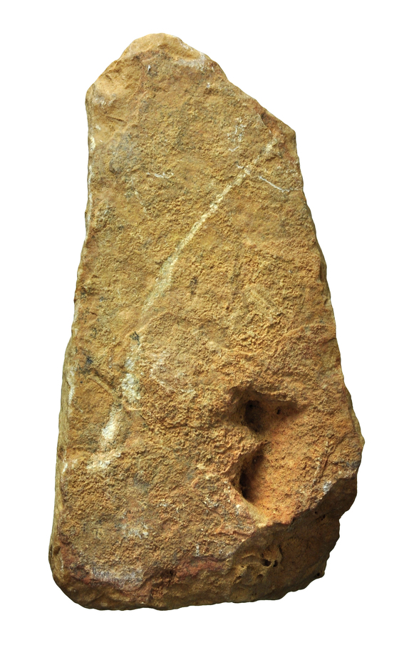 Plaqueta grabada con motivos simbólicos. Cova del Parpalló (Gandia, Valencia). Solutrense medio antiguo.