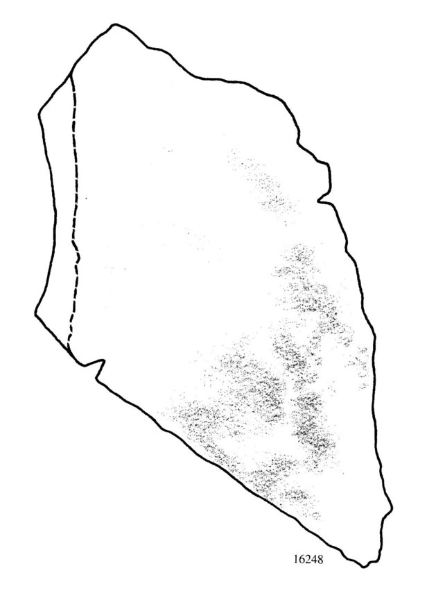Plaqueta pintada con decoración simbólica. Cova del Parpalló (Gandia, Valencia). Solutrense medio antiguo.