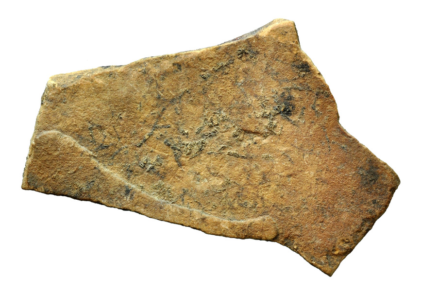 Plaqueta grabada por las dos caras con motivos simbólicos. Cova del Parpalló (Gandia, Valencia). Solutrense medio antiguo.