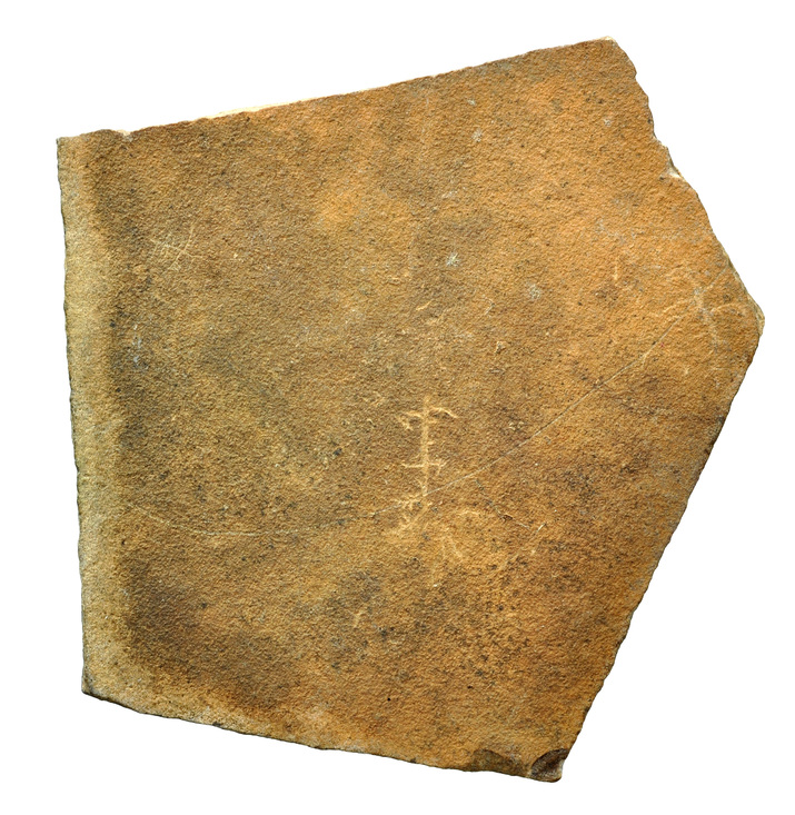 Plaqueta grabada con motivos simbólicos. Cova del Parpalló (Gandia, Valencia). Solutrense medio antiguo.