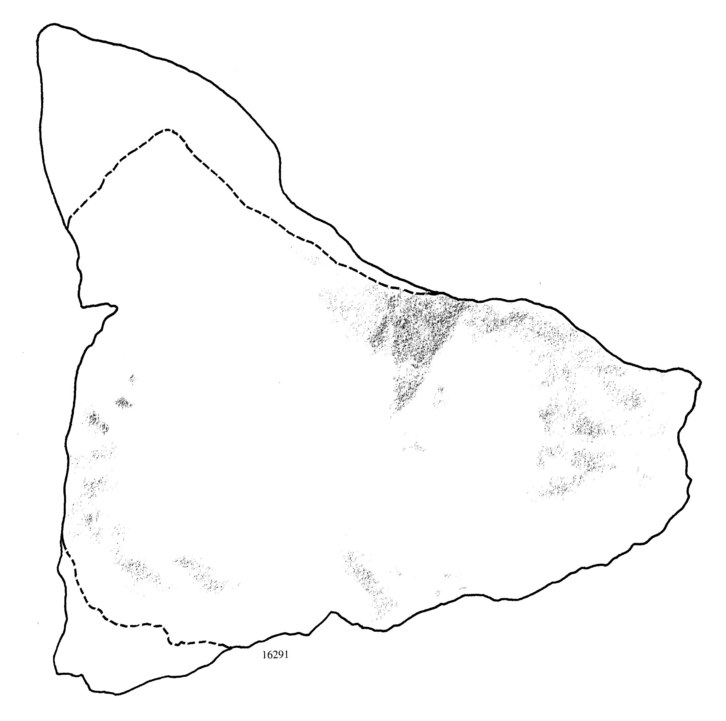 Plaqueta pintada con decoración simbólica. Cova del Parpalló (Gandia, Valencia). Solutrense medio antiguo.