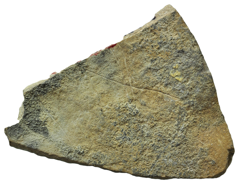 Cara B: superposición de banda de líneas paralelas incurvada y líneas sueltas rectas y curvas entrecruzadas (grabado normal y somero).