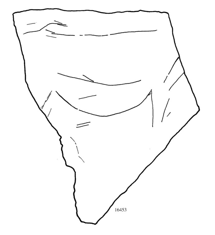 Plaqueta grabada con figura de animal indeterminado. Cova del Parpalló (Gandia, Valencia). Solutrense medio superior.