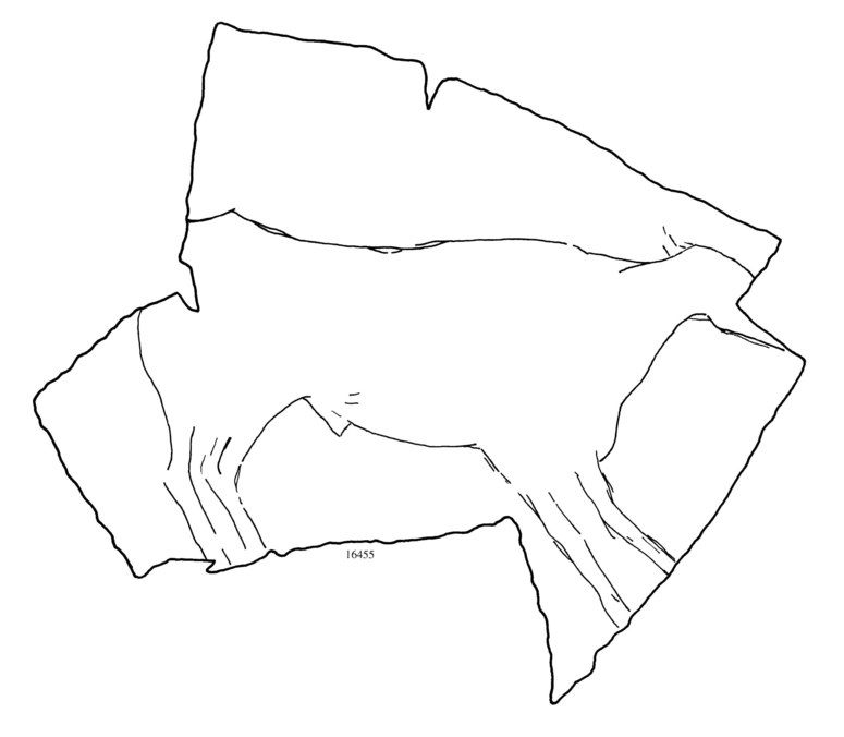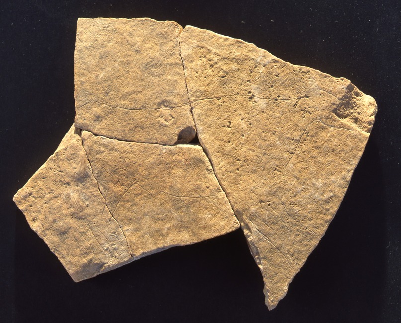 Plaqueta grabada con un bóvido con detalle de sexo y oreja. Cova del Parpalló (Gandia, València) . Solutrense medio.