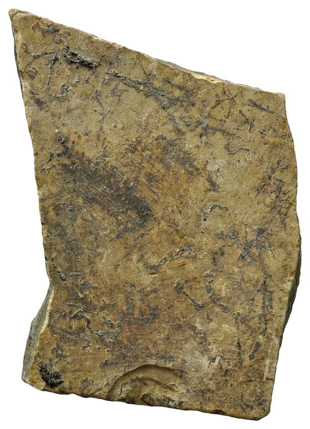 Plaqueta grabada y pintada. Cova del Parpalló (Gandia, Valencia). Solutrense medio superior.