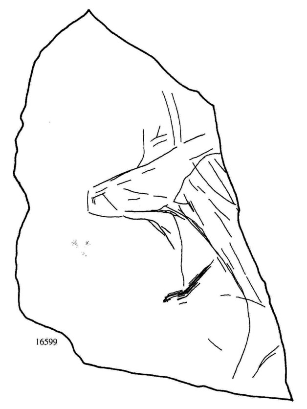 Plaqueta grabada. Cova del Parpalló (Gandia, Valencia). Solutrense medio superior.