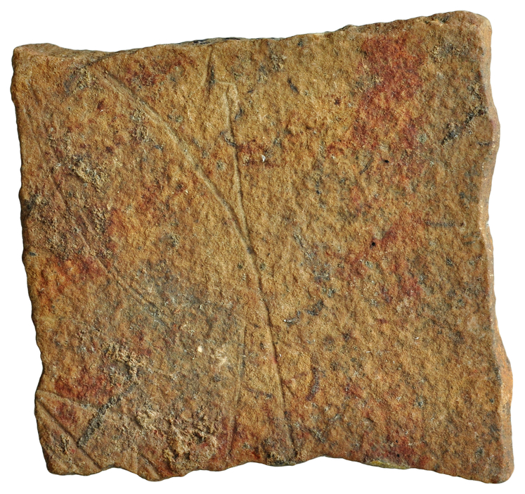 Plaqueta grabada y pintada. Cova del Parpalló (Gandia, Valencia). Solutrense medio superior.