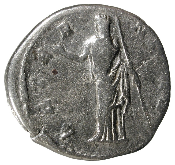 Juno (?), de pie hacia la izquierda, con la mano derecha levantada y portando cetro en la mano izquierda.