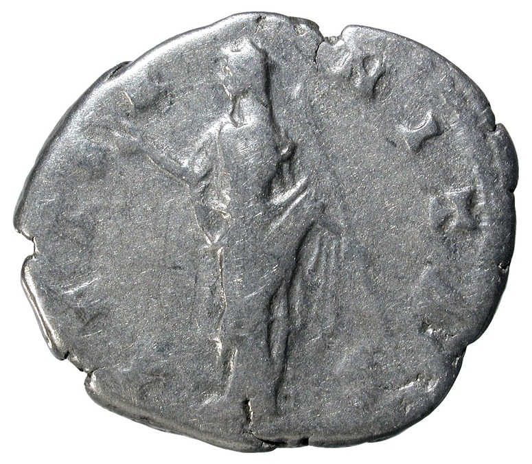 Juno (?), de pie hacia la izquierda, con la mano derecha levantada y portando cetro en la mano izquierda.