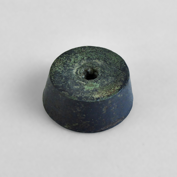 Ponderal troncocònic de bronze amb un forat central quadrat.