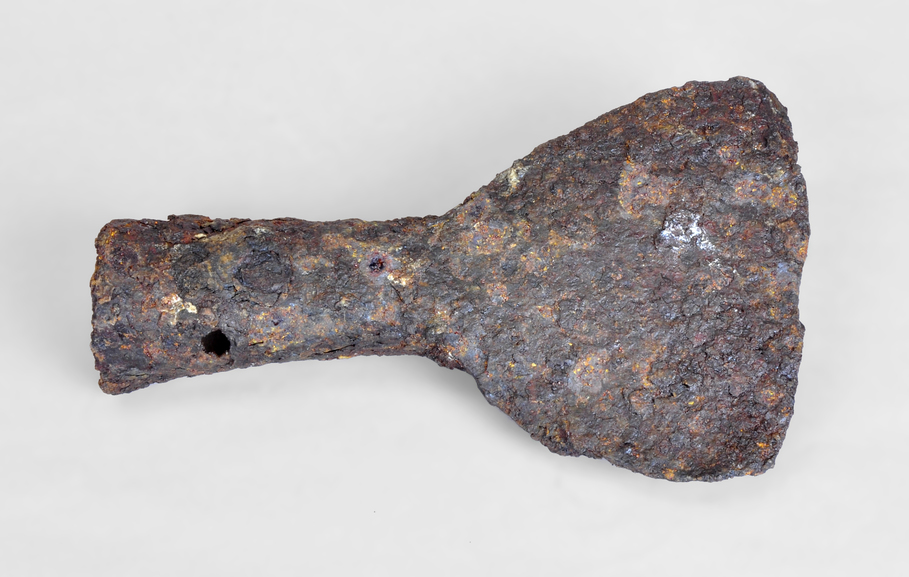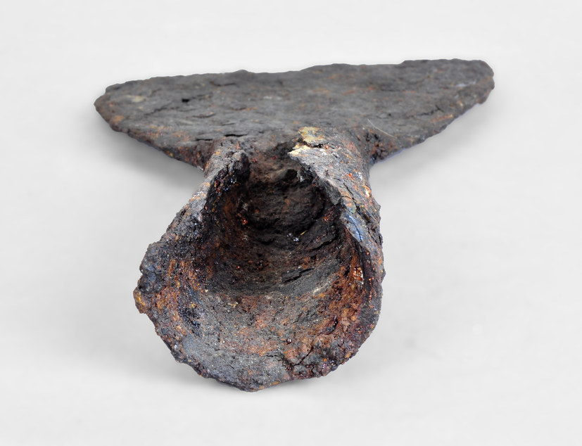 Rastell de ferro de paleta quasi triangular i tub amb perforacions per a fixar-hi el mànec.
