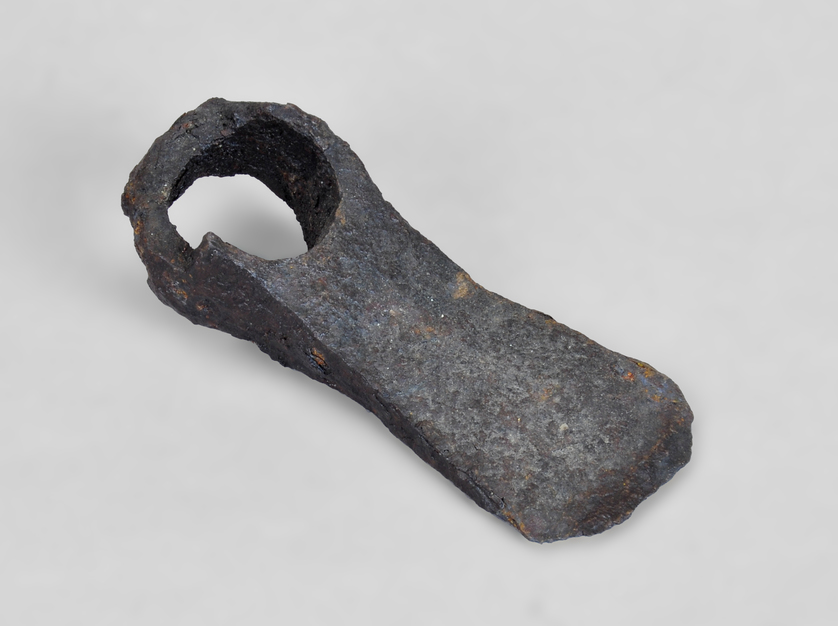 Aixadella o caveguet de ferro amb ample ull per al mànec.