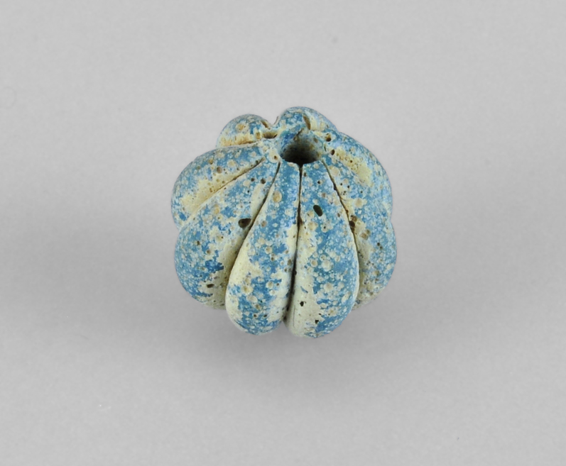 Dena de pasta vítria i cos esfèric gallonat. És de color blau clar.