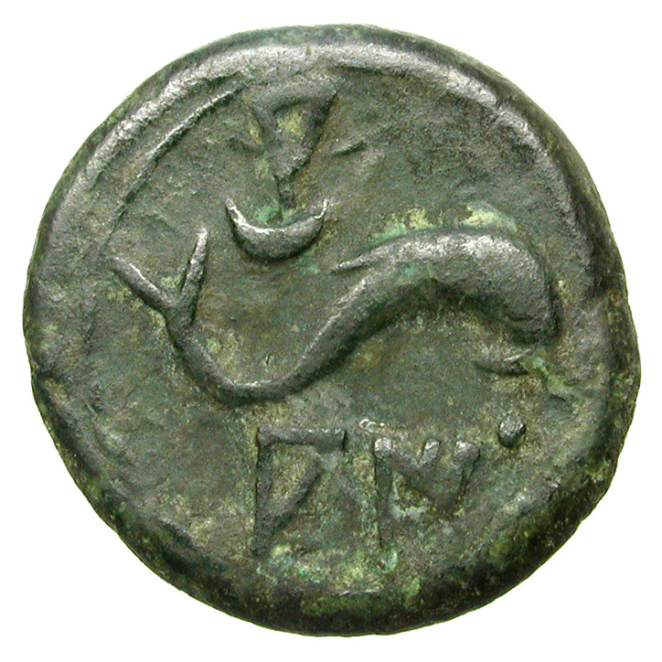 R/ Dofí, a dta. , llegenda a i ai , marques creixent i tres punts.