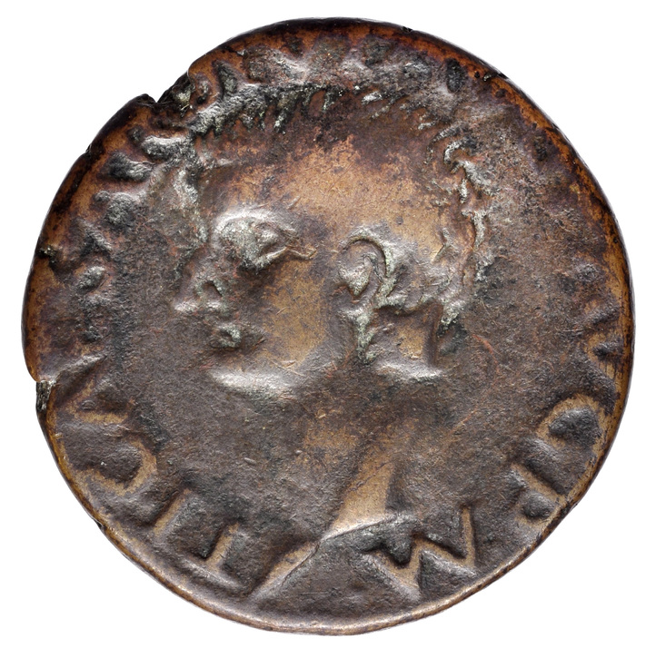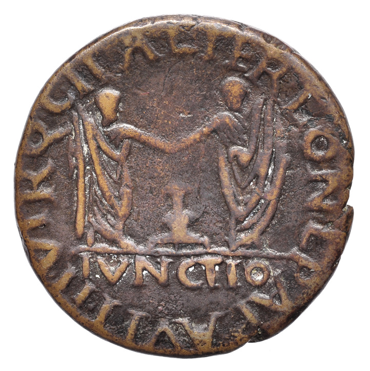 Dues figures togades dempeus, donant-se les mans, davall IVNCTIO.
