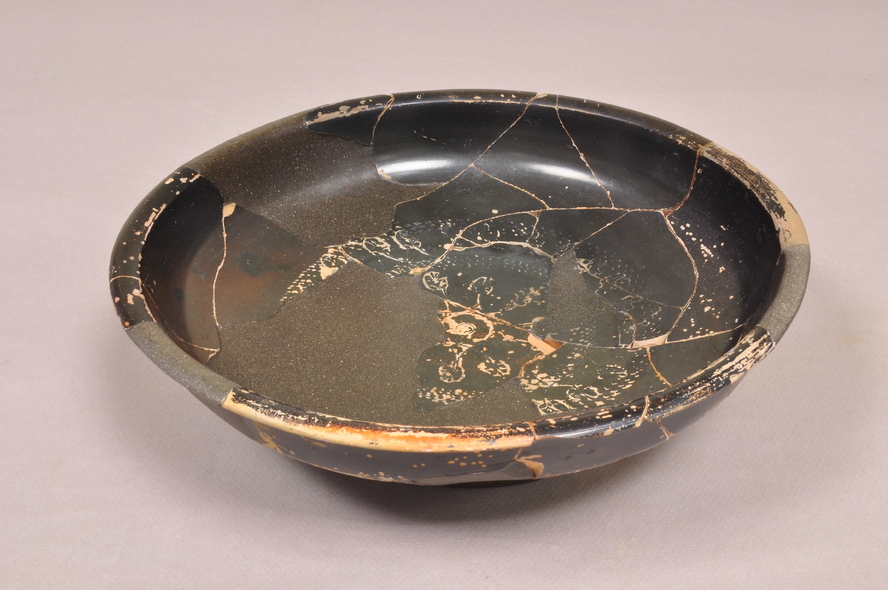 Bol de ceràmica de producció àtica de vernís negre. Està decorat en la part interna, on hi ha un grup de palmetes impreses en baix relleu, que es combinen amb línies incises, i formen dos cercles tangents a altres fets amb rodeta. Fragmentat i restaurat.