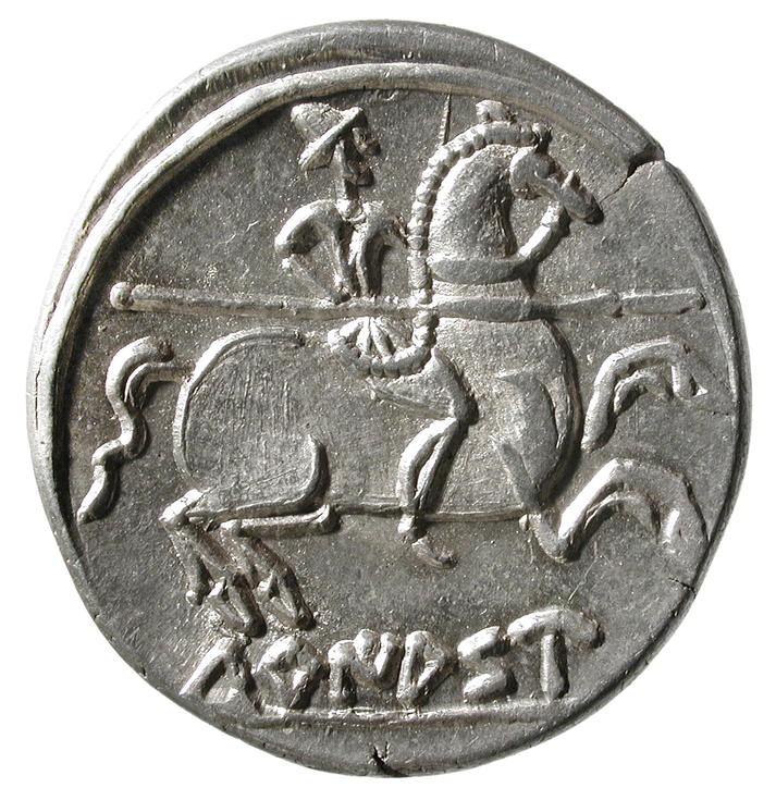 R/ Genet, amb llança, a dta., llegenda tuŕiasu.