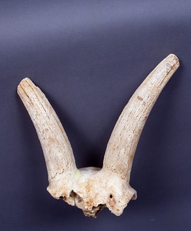 Crani de cabra salvatge (Capra pyrenaica). Cova del Parpalló (Gandia, València). Paleolític superior.