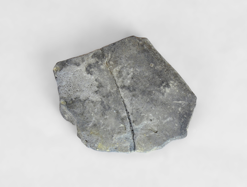Tejuelo de cerámica con las superficies muy quemadas.