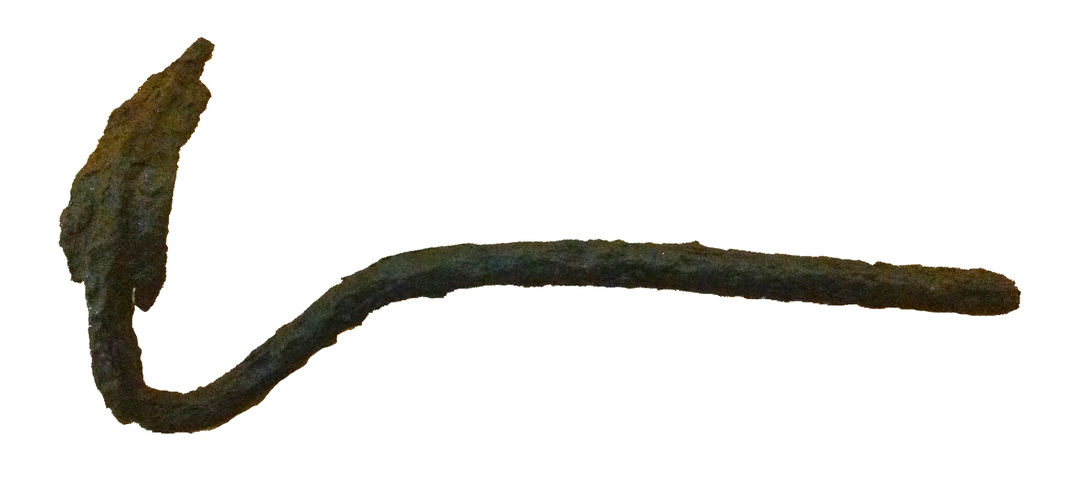 Punta de soliferreum amb la vareta tallada. L'extrem de la vareta i la punta estan doblegats en angles diferents.