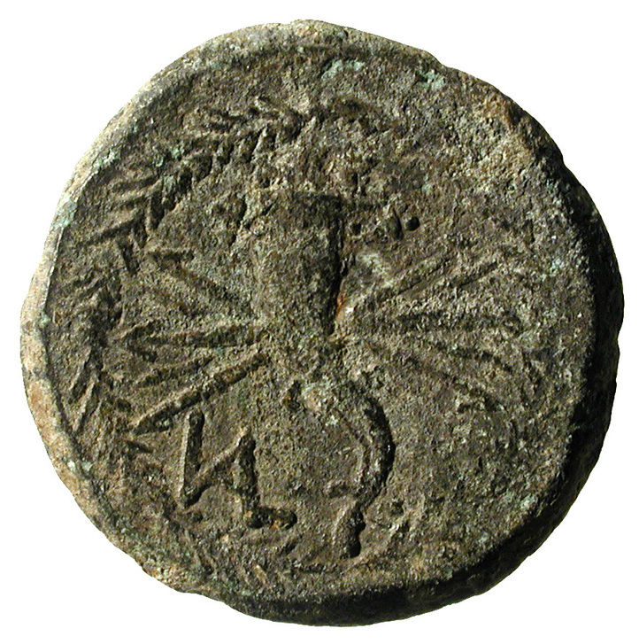 R/ Cornucòpia sobre feix de llamps dins d'una corona. Dessota llegenda VAL.