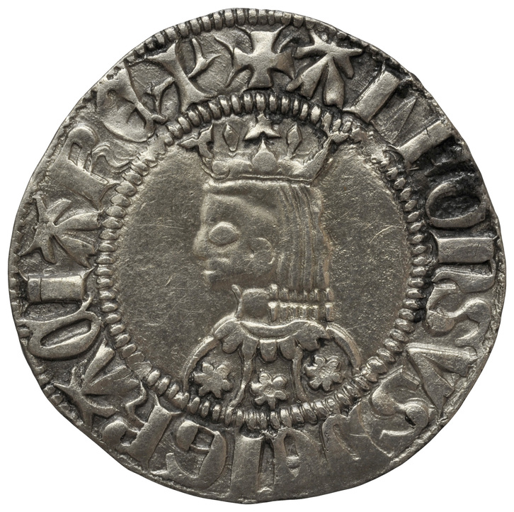 a/ +ALFONSVS DEI GRACIA REX (A i U llatines) Efigie, a l'esquerra, amb vestit partit verticalment. Roses de sis pètals als espais.