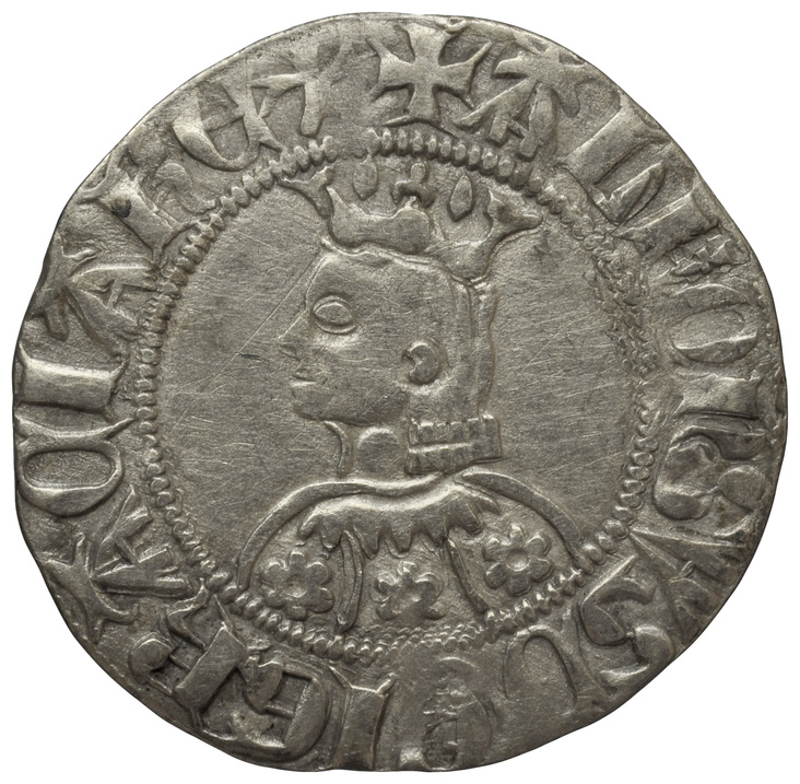 a/ +ALFONSVS DEI GRACIA REX (A i U llatines) Efigie, a l'esquerra, amb vestit partit verticalment. Roses de sis pètals als espais.