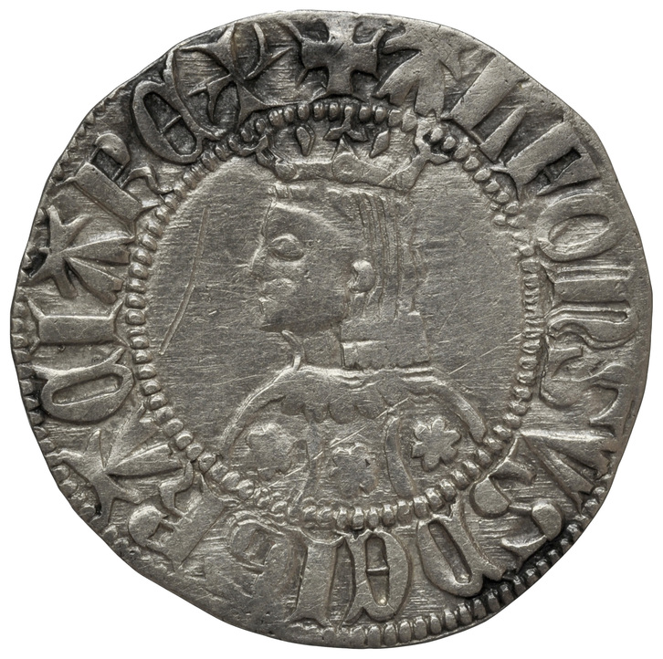 a/ +ALFONSVS DEI GRACIA REX (A i U llatines) Efigie, a l'esquerra, amb vestit partit verticalment. Roses de sis pètals als espais.