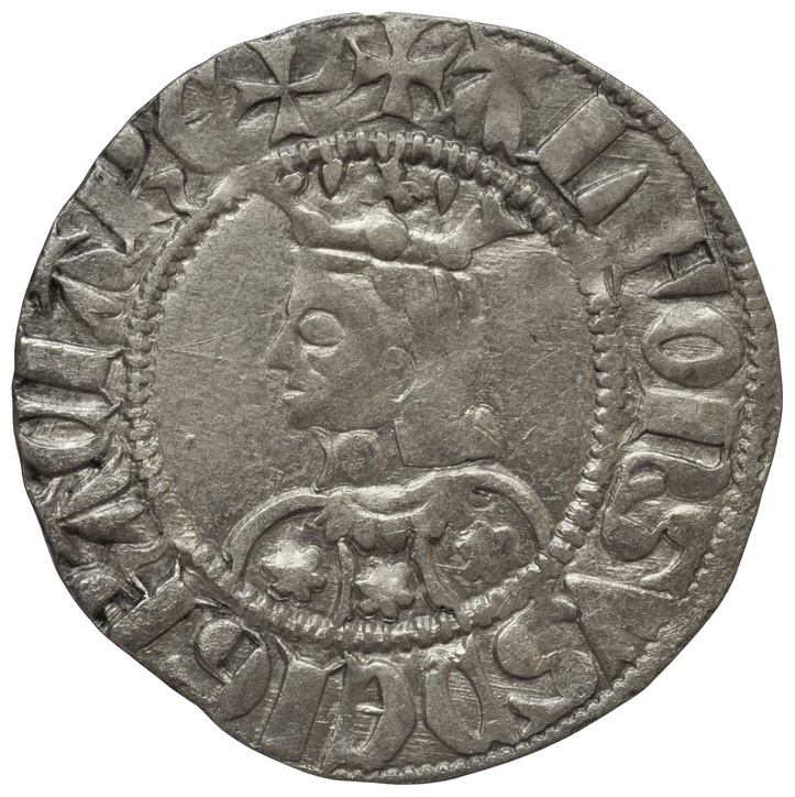 a/ +ALFONSVS DEI GRACIA REX (A i U llatines) Efigie, a l'esquerra, amb vestit partit verticalment. Roses de sis pètals als espais.