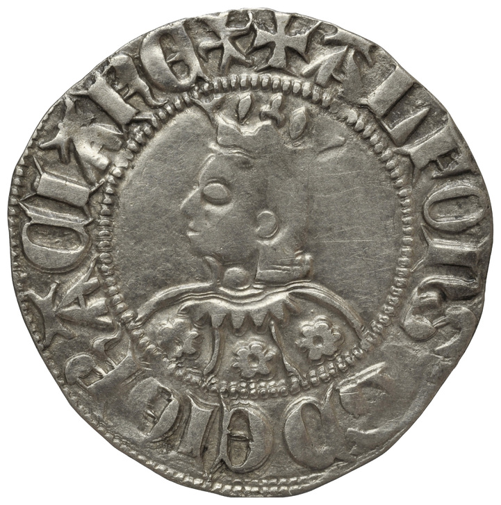 a/ +ALFONSVS DEI GRACIA REX (A i U llatines) Efigie, a l'esquerra, amb vestit partit verticalment. Roses de sis pètals als espais.