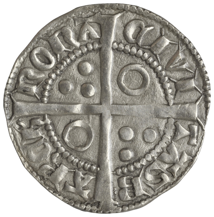 r/ -CIVI - TASB - ARCh' - NONA- (A, V i T llatines). Creu de tern. CIVI a anell.
