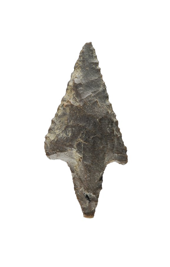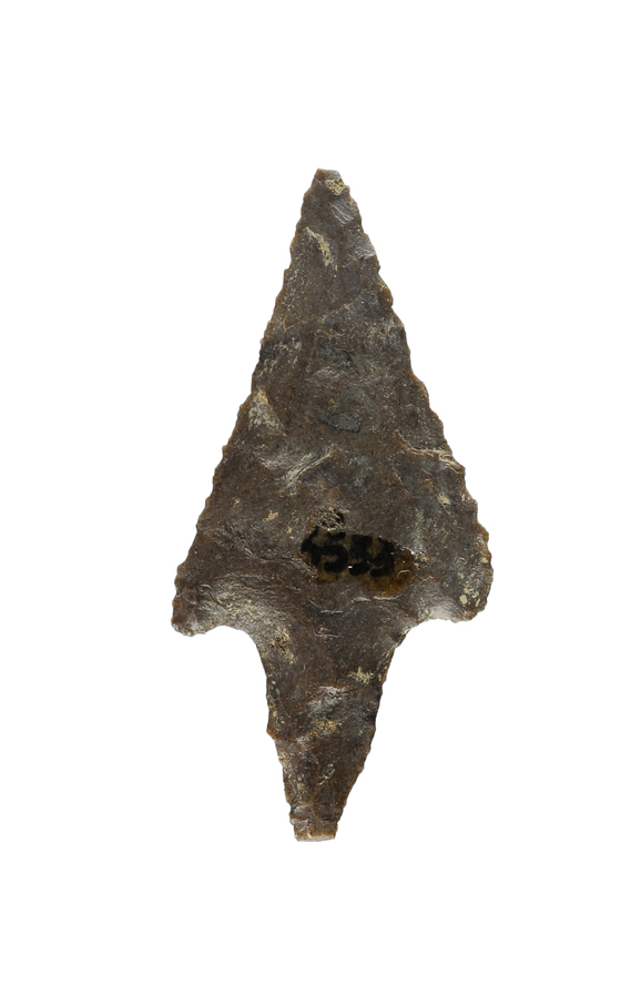Punta de pedúnculo y aletas. Cueva de la Torre del Mal Paso (Castellnovo, Castellón). Eneolítico.