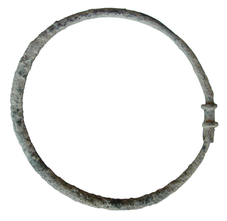 Arracada de cèrcol, de secció circular, realitzada en argent, amb dos menuts realçaments a prop de l'extrem corresponent al tancament.